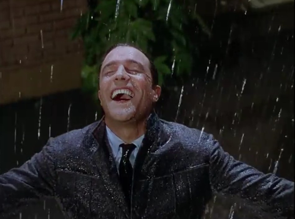 - Y por la escena del baile bajo la lluvia: la mejor escena de un musical rodada jamás. ¿Sabías que esta canción no estaba incuida en el guión original y que cuando la incorporaron en un nuevo borrador iba a cantarla la actriz de la película?¿Sabías que la grabación de esta escena duro casi tres días? ¿Sabías que Gene Kelly la grabó con 39 grados de fiebre pese a estar empapado durante toda la grabación?